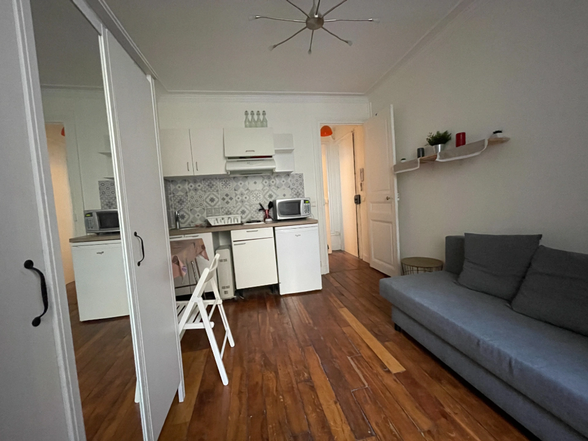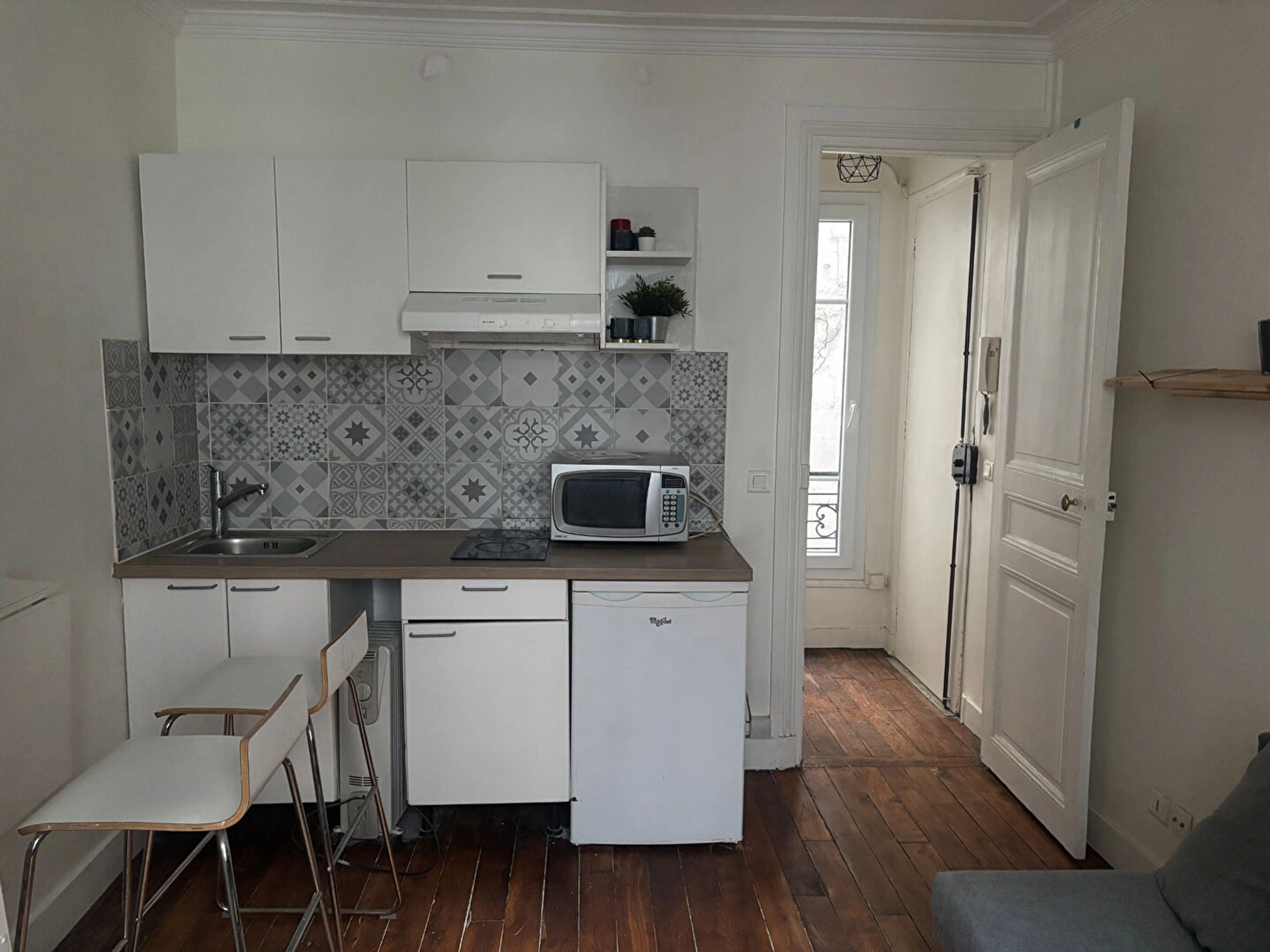 Situé à proximité immédiate du métro Place de Clichy dans le 9ème arrondissement de Paris, nous vous proposons un appartement de type studio d'une superficie de 15,58 m² loué meublé au 4ème étage d'un immeuble ancien.