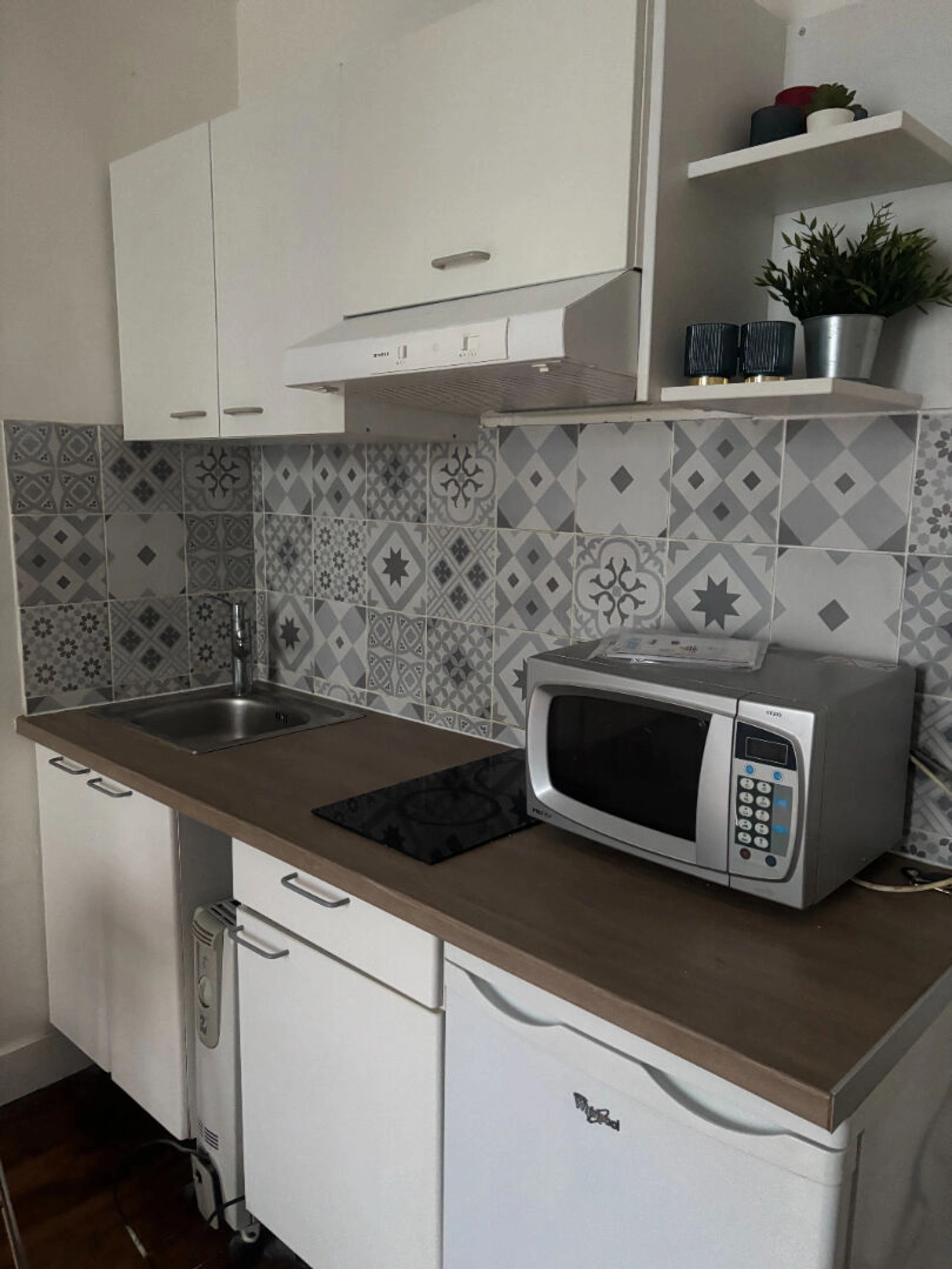 Ce bien se compose d'une entrée, d'une pièce principale avec rangements avec cuisine ouverte et équipée (rangements, plaques de cuissons, hotte, réfrigérateur, four, vaisselles) et une salle de douche avec WC.